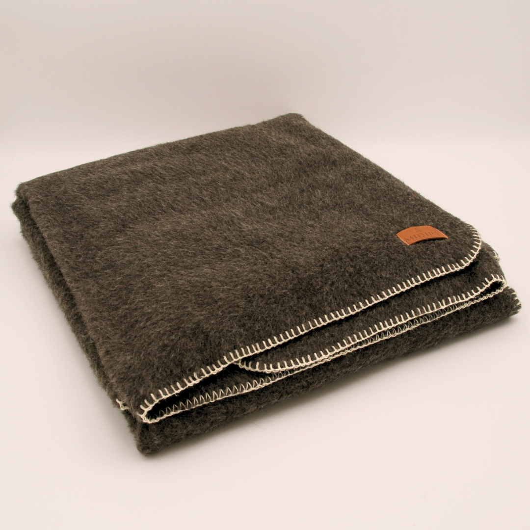 Plaid en laine d’alpaga : 85 % alpaga, 15 % laine mérinos française.