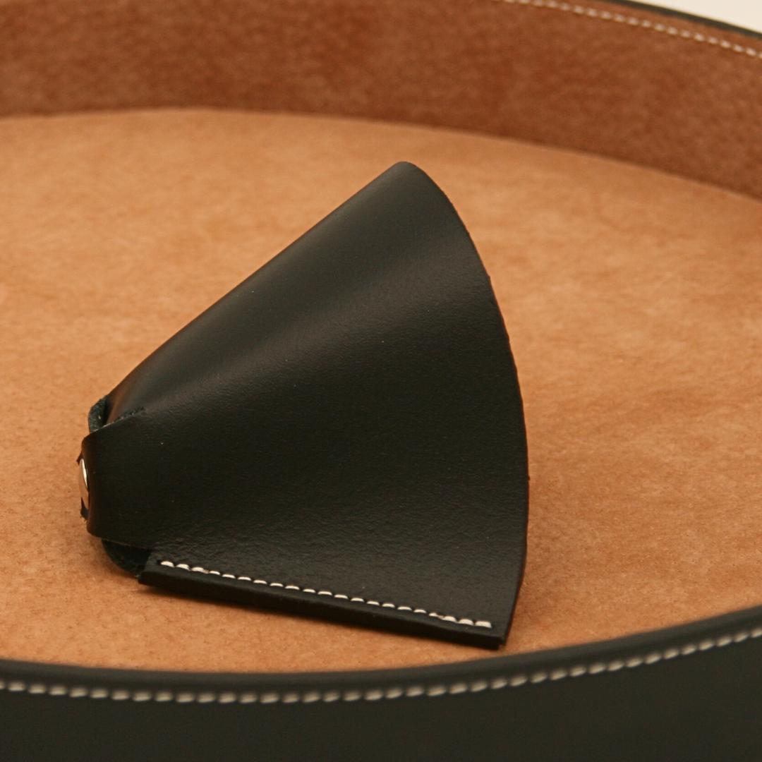 Le coloris Noir Ébène, dense et profond, met en valeur la pureté des lignes de cette piste à dés en cuir. Les teintures de tranche ton sur ton assurent une finition discrète et raffinée, tandis que la surpiqûre assortie souligne la structure avec élégance, sans rupture visuelle.