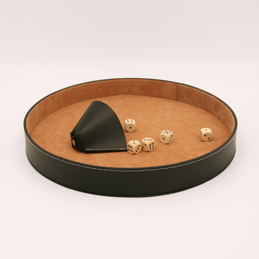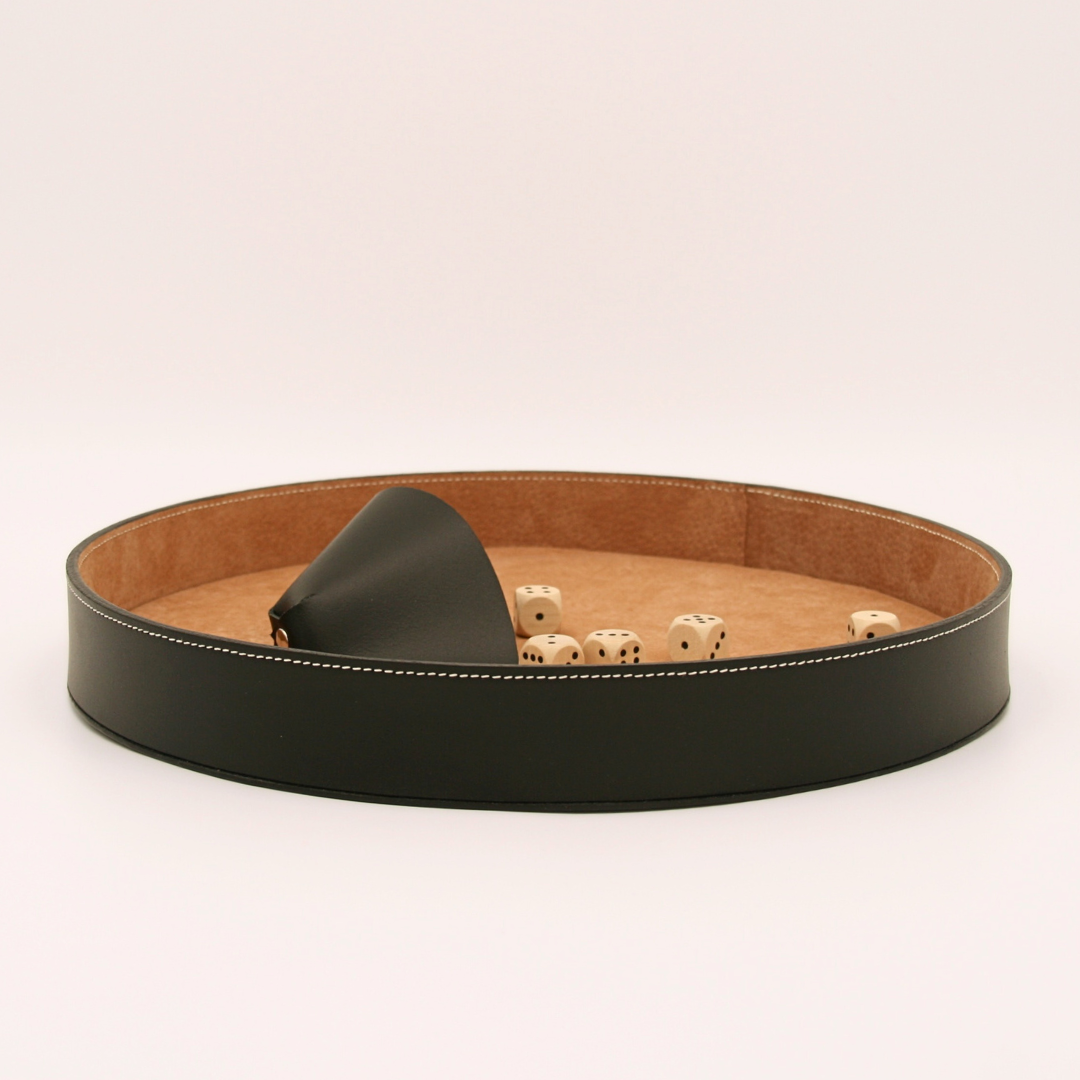 La piste à dés en cuir Porto Vecchio coloris Noir Ébène est un objet de jeu élégant et intemporel, pensé pour celles et ceux qui aiment conjuguer plaisir du jeu, belles matières et sobriété esthétique.