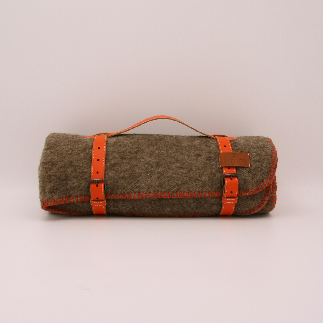 Présenté roulé dans sa sangle en cuir véritable fabriquée artisanalement, ce plaid en laine gris constitue un présent élégant et utile. Il peut être offert pour un usage quotidien ou pour célébrer les noces de laine lors d’un anniversaire de mariage.