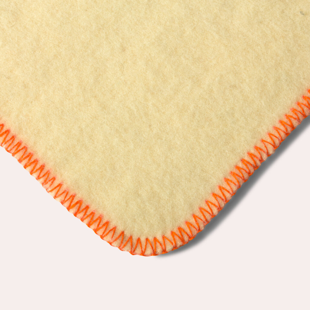 Plaid en laine ivoire finition feston orange Tangerine (80 % haute laine, 20 % mérinos).
