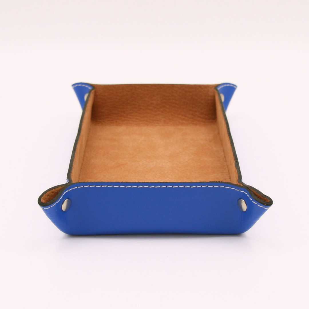 Chaque vide poche en cuir bleu est confectionné avec soin à partir de cuir véritable, sélectionné pour sa qualité exceptionnelle et sa durabilité. Le cuir naturel, tanné selon des méthodes respectueuses de l’environnement, se patine avec le temps, apportant une personnalité unique à chaque pièce. Ce savoir-faire artisanal garantit un produit haut de gamme, à la fois élégant et robuste, conçu pour résister aux épreuves du temps.