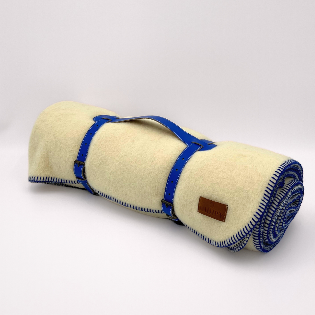 Natural Ivory and Chocolate colors make up the basic palette; the Heather Grey color is the result of a skilful blend of these two yarns. The throw is rolled in its leather strap, handcrafted in France. We sign with a label made of genuine leather, hot stamped and ink free.