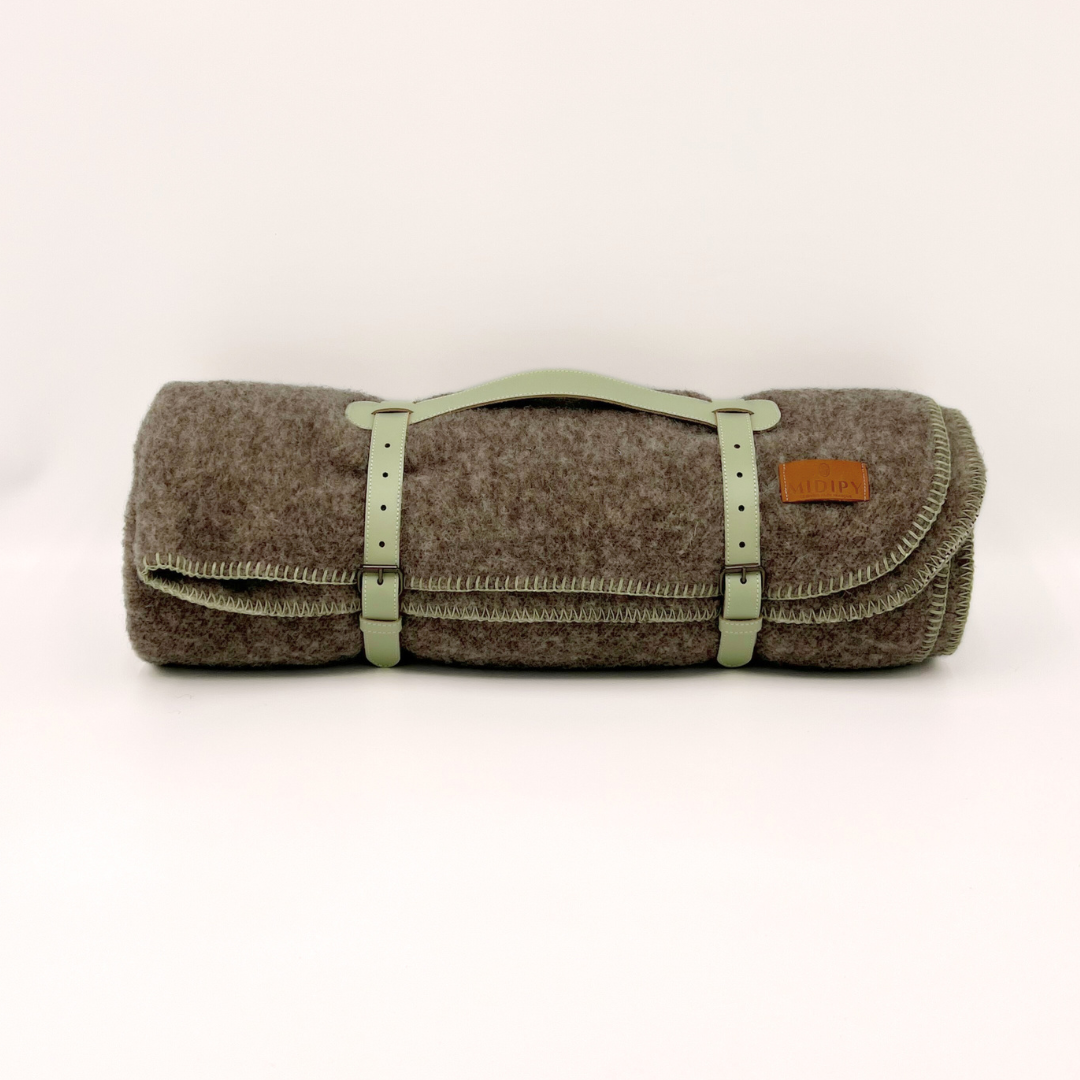 Each throw comes with its own genuine leather plaid holder, handmade in France. Practical and stylish, this strap keeps the blanket rolled up and makes it easy to transport.